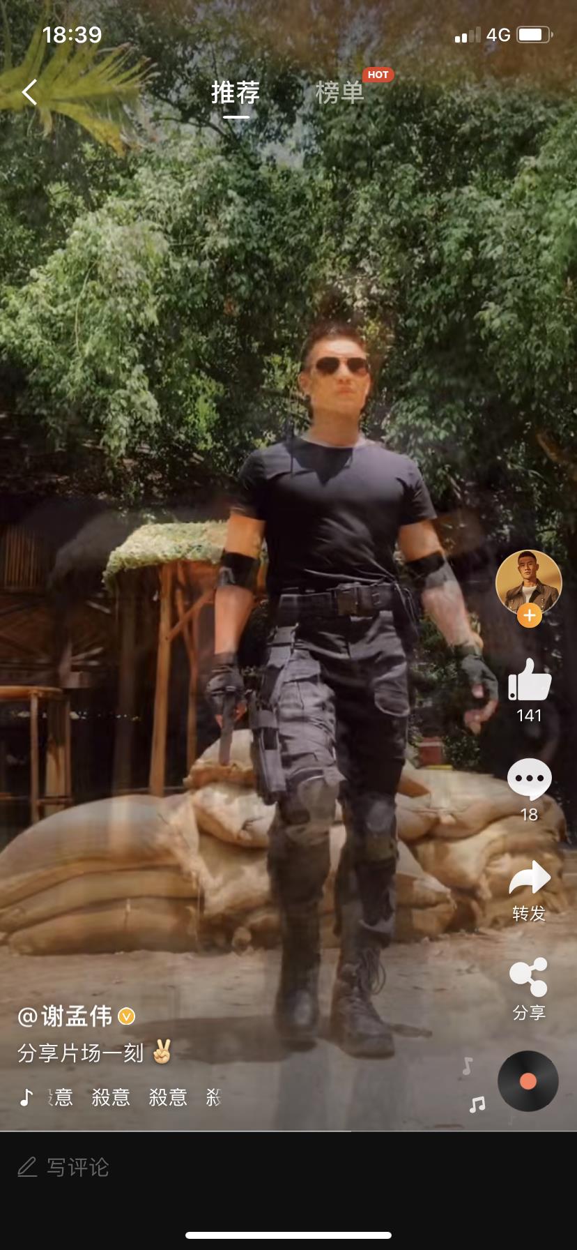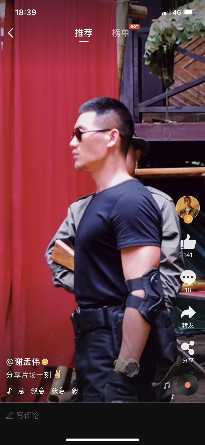 谢孟伟的自拍照中,他的脸上化着受伤妆容,还有嘴边的胡须,身穿黑色上衣,对着镜头露出细微笑容。近些日,从谢孟伟的个人社交平台中,可以看出他一直在剧组潜心拍戏。前几天,他也在社交平台晒出了自己在剧组拍戏空闲时间的视频,配文中说分享片场一刻,最后还俏皮的加了个比耶的小表情。