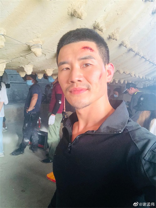 "嘎子哥"谢孟伟满脸伤痕潜心拍戏,520无法与老婆相聚隔空秀恩爱