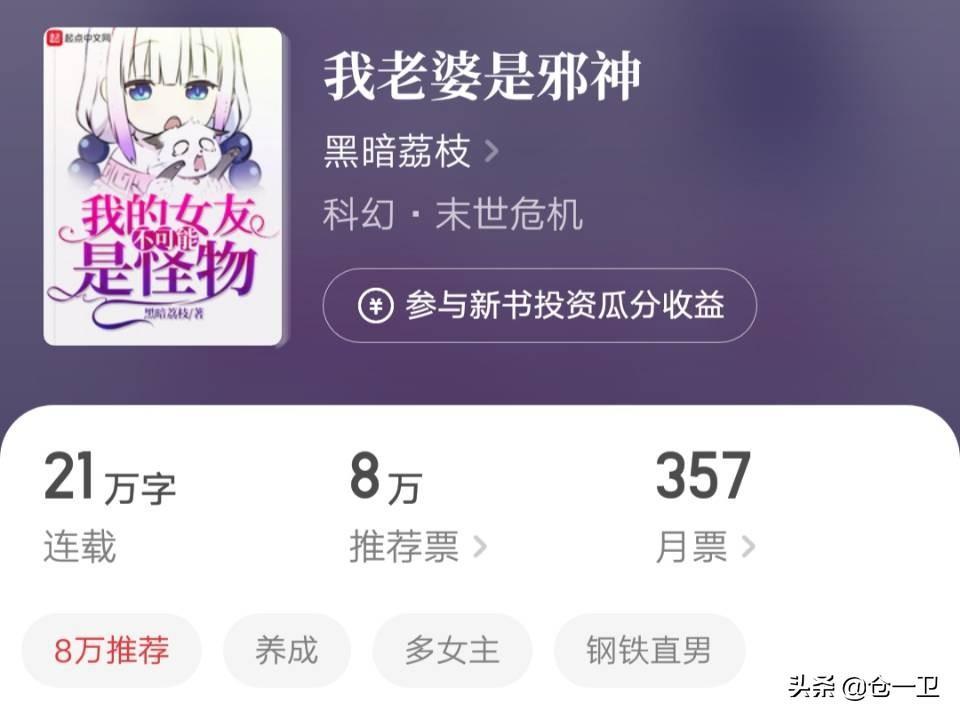 黑暗荔枝《我老婆是邪神》首订3900,同期排名第二,精品徽章未亮
