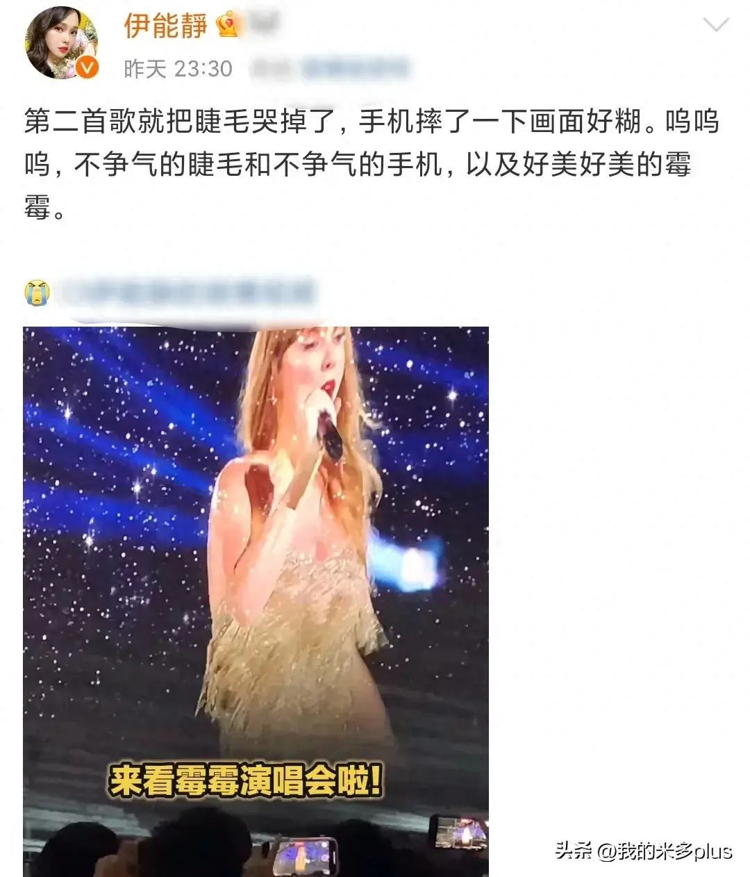 最近很多圈内艺人都到现场观看霉霉演唱会,像周杰伦林俊杰这些老牌歌手都去过,让人没想到的是秦昊老婆到了56岁的年龄还跟着年轻人一起追星,伊能静晒出现场合唱的片段,说自己见到偶像太不争气,第二首歌就把睫毛哭掉了,手机还摔了一下,这表现不知道的还以为伊能静是十几岁小女生,平时情绪那么稳定,到了自己喜欢的歌手面前还是很难冷静下来。