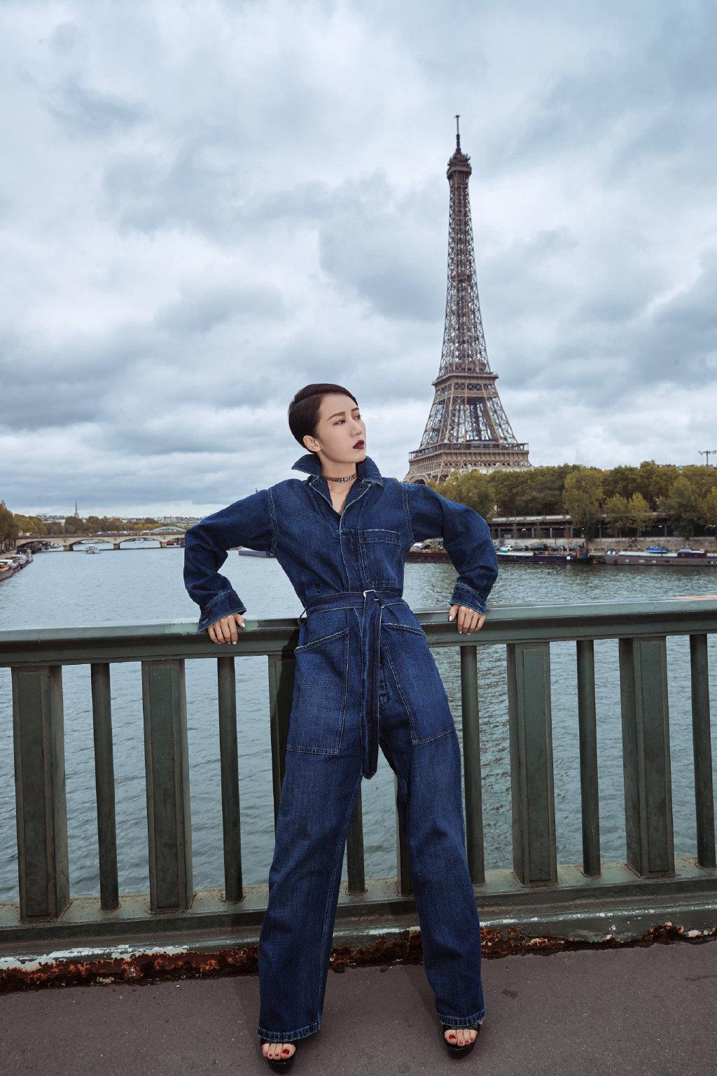 这一身牛仔连衣裤,看上去给人以一种利落,帅气的感觉,其实不单单是服饰的搭配呈现出来了这种气质,李念的妆容也是将这种帅气的感觉加深了。