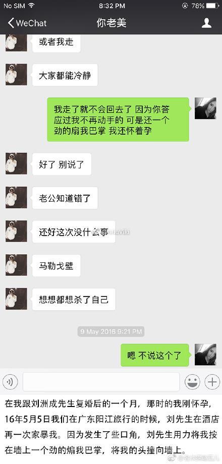 两人曾在16年2月离婚,之后刘洲成向妻子道歉并保证悔过,16年4月两人复婚。