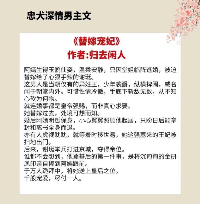 大家好, 我是涵涵,本期分享4本男主忠犬深情的古言,男主纵横捭阖,威名赫赫,但怕老婆!