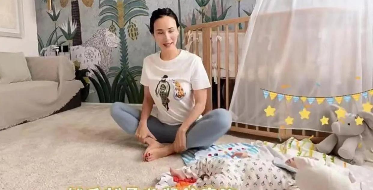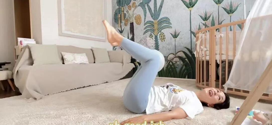 卢靖姗锻炼身体的同时,还不忘把孩子抱在离自己身边不远的地毯,当她双脚朝天,身体躺在地毯的时候,时不时都能够看一眼孩子,就像是摄像头一样,可以时刻的看着女儿。