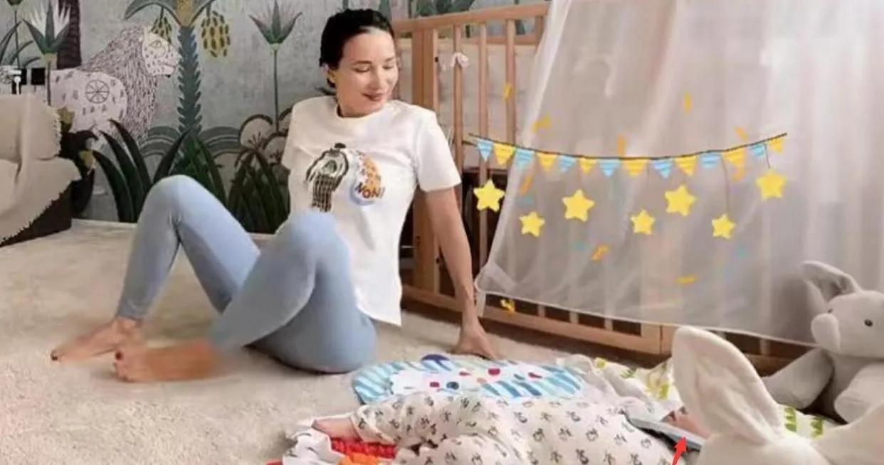 卢靖姗锻炼完身体后,情不自禁的把眼睛转向孩子身上,看到她有力地坐在地毯上,眼神不舍从孩子身边移开,因此卢靖姗看着孩子的同时满脸的笑意,好像骄傲地表示自己做妈妈了,这一幕隔着屏幕都能感觉到,卢靖姗和孩子相处的幸福时刻。