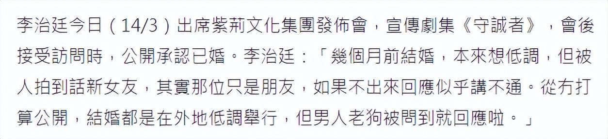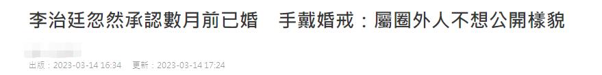 事实上,李治廷原本并不打算公开结婚,所以就连婚礼都在外地低调举行,但自己和老婆闺蜜被拍到,还产生误会,让他不得不出面解释。