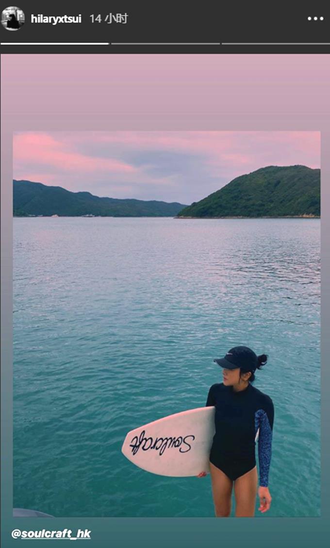 4月25日,陈奕迅老婆徐濠萦在个人社交账号上晒出一组去冲浪的照片。画面中,徐濠萦抱着冲浪板,穿着剪裁贴身的冲浪衣,秀出修长纤细的美腿。