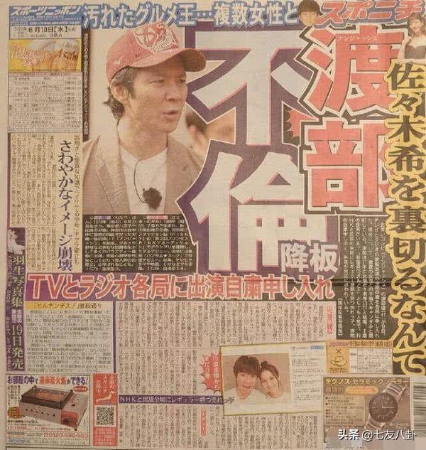 随后没多久,日本的多家媒体就曝光了渡部建出轨多名女子的新闻,另一家报纸的头条则登出了渡部建在新冠疫情期间和一名AV女优多次幽会的新闻。渡部建在新闻曝光没多久就承认了出轨的事实。
