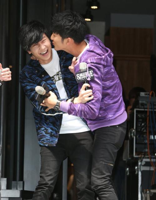 不过在这个腐女盛行的时代里,他们两人还真的是毫不避讳什么,这不,参加活动的时候直接签了个"结婚证",林俊杰戴着写着新郎的胸花,怀秋戴着新娘的,手挽着手俨然是一对新人的模样。为什么会莫名其妙的觉得配一脸啊,一大波腐女都叫嚣着他俩在一起呢。
