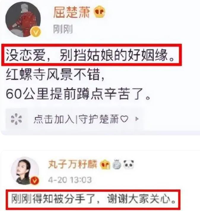 屈楚萧否认了恋情,甚至喊话狗仔“别挡姑娘的好姻缘”,而万籽麟则表示“刚刚得知被分手了”。