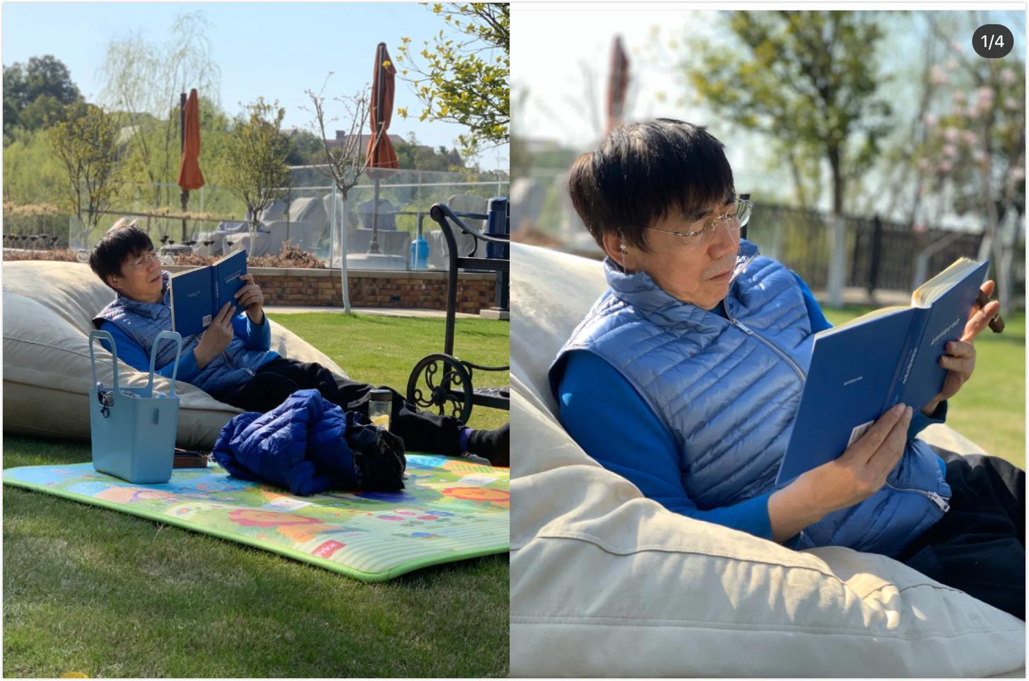 范明现在的生活安逸的他躺在草地上悠闲的看着书,一旁放着老婆的蓝色背包,看来这次两人又是穿的情侣装,颜色高度契合,没想到"邢捕头"的现实生活是这样的,让人羡慕啊!
