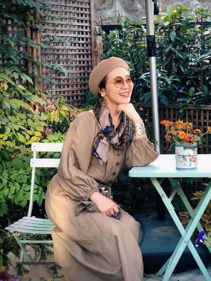 老婆穿件波西米亚风的毛衣,戴个黑色围巾分隔出层次,头上戴米色毛线帽,这种风格与她年轻时很像,她的这种搭配方法很时尚,经得起时间的考验哦。