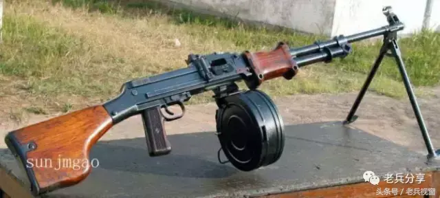 56式7.62毫米轻机枪是仿制前苏联的RPD轻机枪,1956年定型,63年经改进设计定型56-1式,大量装备部队,是我国装备时间最长、装备量最大的一种机枪。
