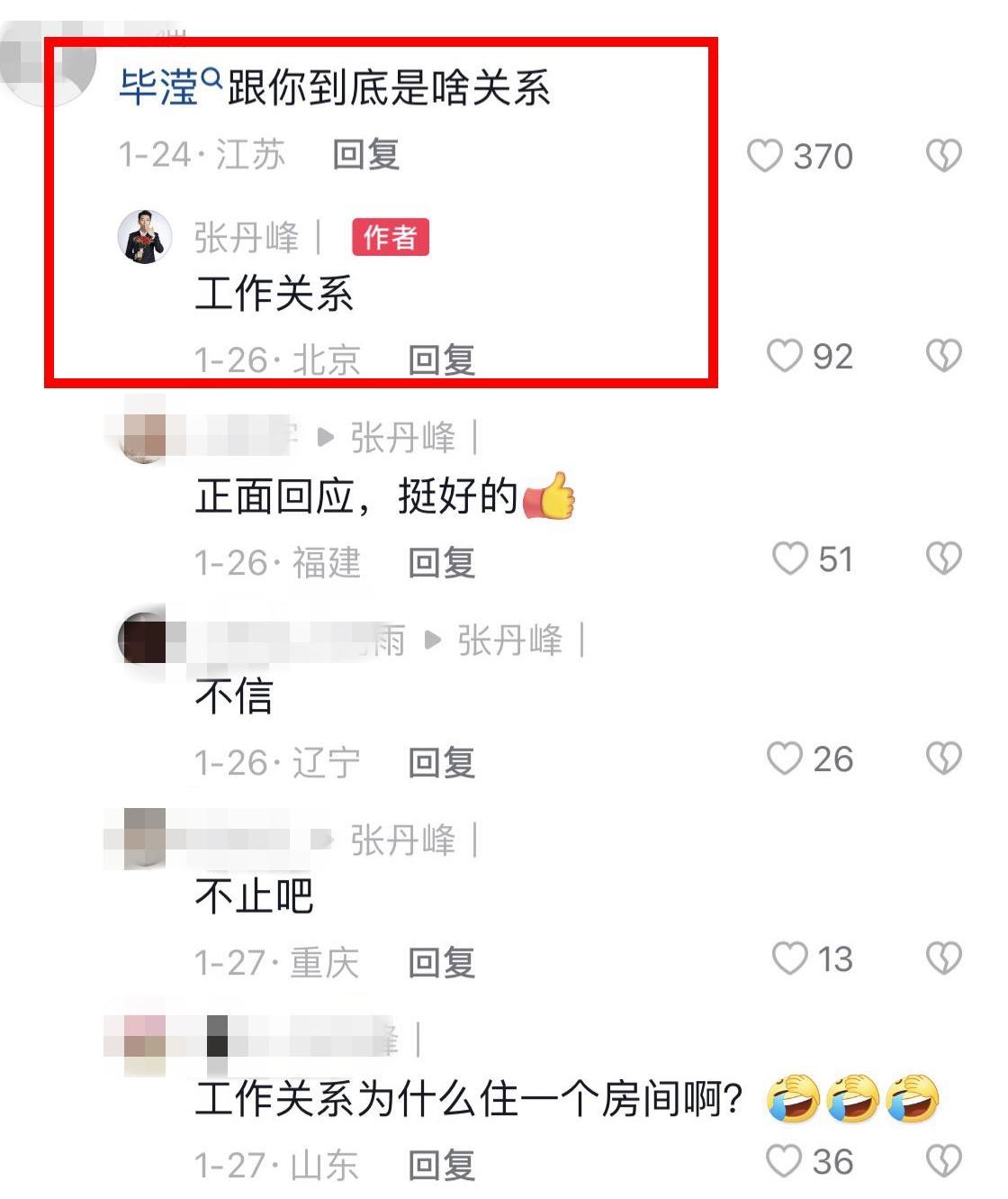 1月26日,张丹峰在自己的社交账号留言区给出了答案。