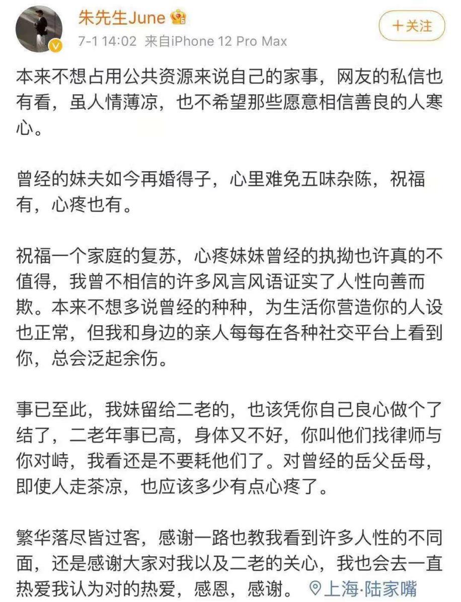 今天已经7月6日了,讨论的热度却依旧不减,而女方哥哥朱先生的微博更是将此事推向高潮。