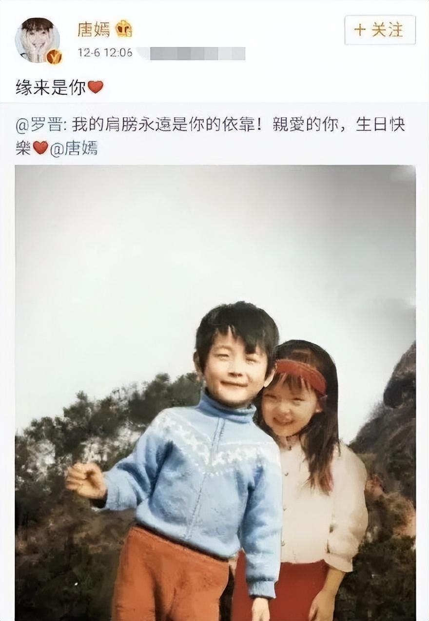 罗晋一向很大胆,他直接表明了心迹,2015年《锦绣未央》拍完,2016年唐嫣的生日,罗晋发博,把两人童年照片剪辑在一起,大方公开恋情。