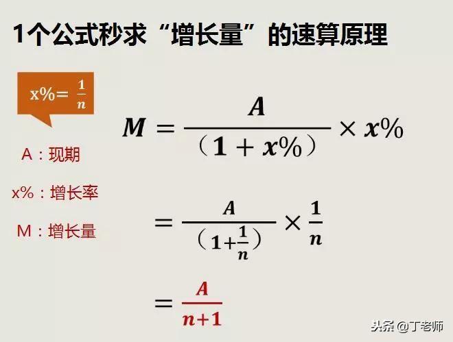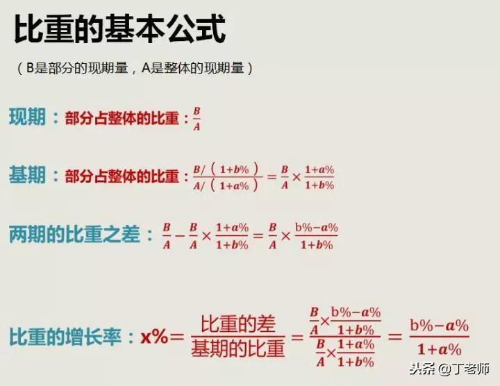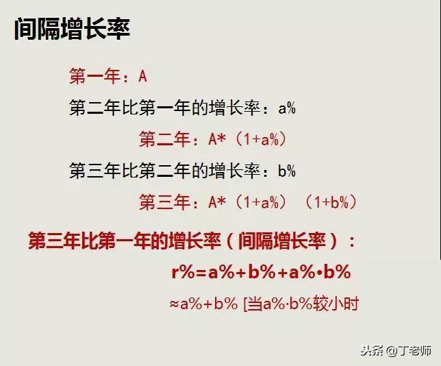 “一个公式速求增长量”适用于x%恰好约等于1/n的时候,倘若不能化成1/n的形式,建议不用这个公式进行速算,比如超过50%的增长率,就不方便化为1/n的形式;“比重的增长率”也常称为“比重比”;两期平均数的增长率的比较,等同于“比重的增长率”;“比重的差”和“比重的增长率”是两个不同的概念。