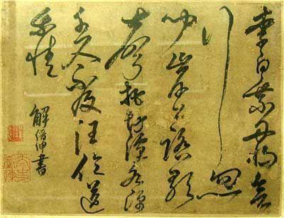 解缙看后一笑,拿笔在门联左右各添三字便挺胸而入。