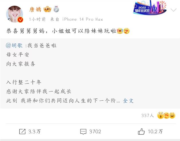 这次胡歌官宣有了女儿,唐嫣也是及时赶到送祝福,能看出他们之间的感情真的十分好,而且对于这个消息,唐嫣应该是早就知道的。