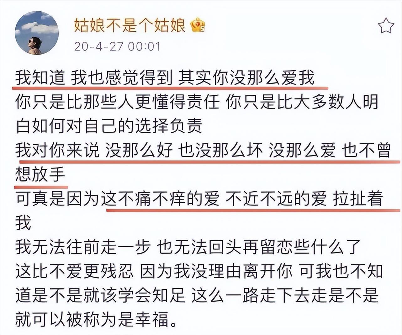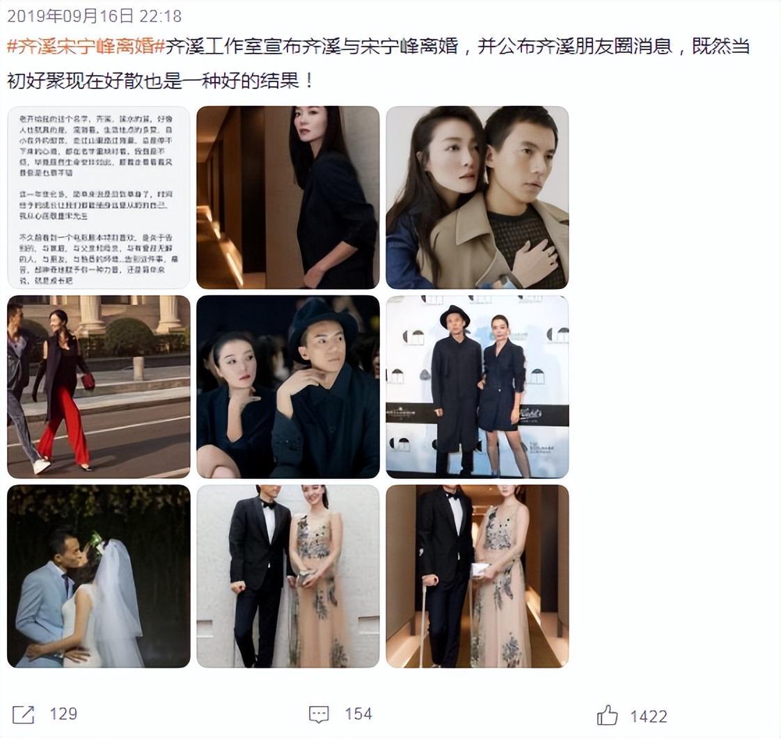 同年9月,齐溪在生日当天的发文中,用一句极其简单的话,宣布了她与宋宁峰离婚的消息。