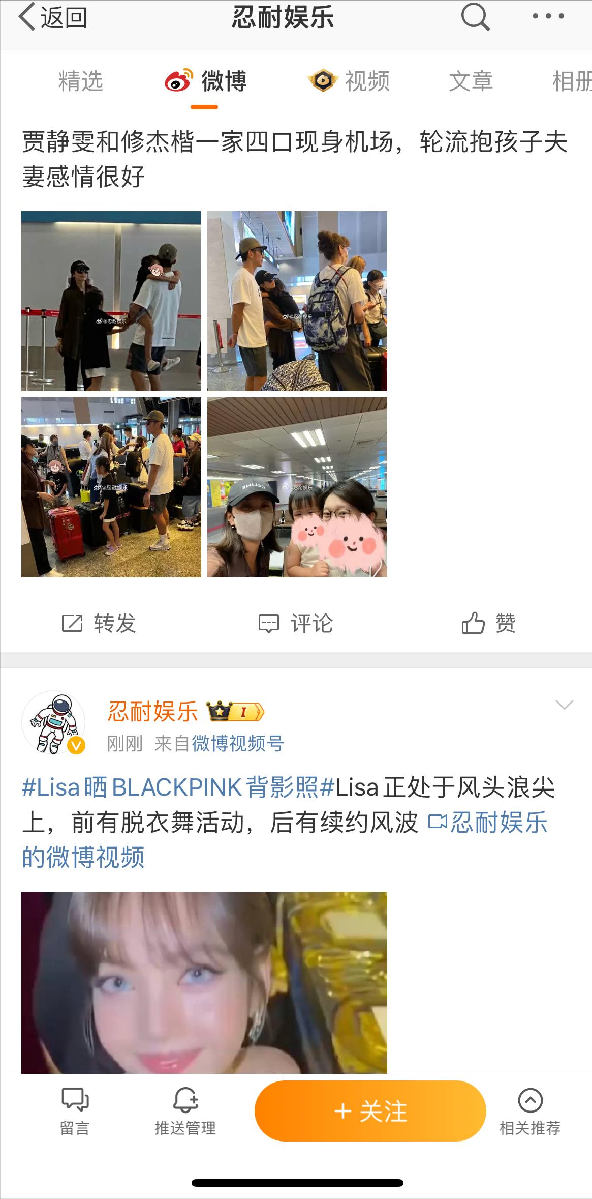 娱乐营销号“忍耐娱乐”照常在微博搬运实时快讯,吸引微末的流量。