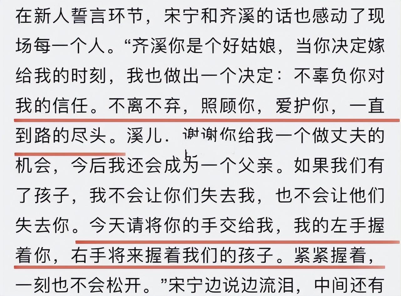 他将著名央视主持人王翰涛请来当婚礼司仪,将齐溪的恩师请来担任证婚人,给足了妻子“牌面”。