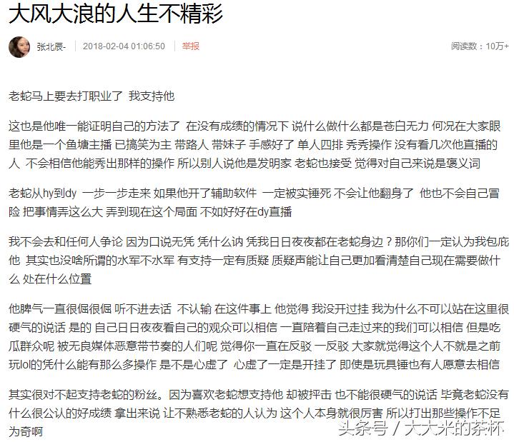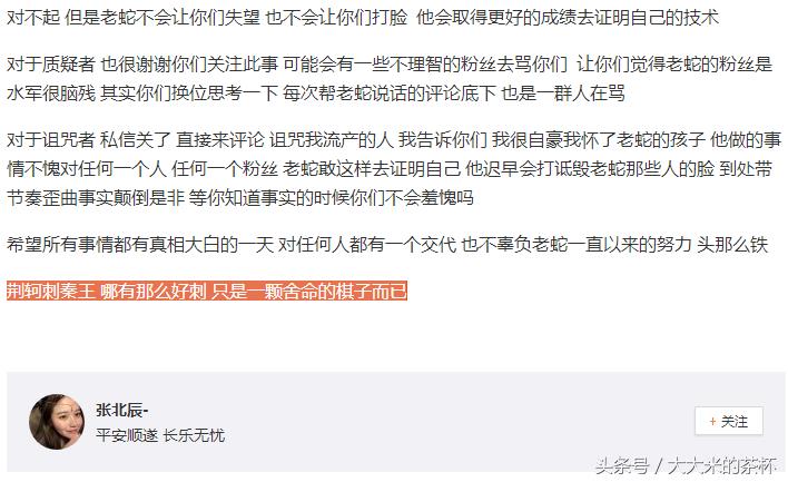 今天凌晨,蛇哥老婆张北辰微博发长文支持蛇哥