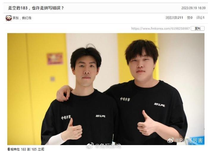 -感觉是写错了,看起来183~185之间(放上了和Theshy的合影)