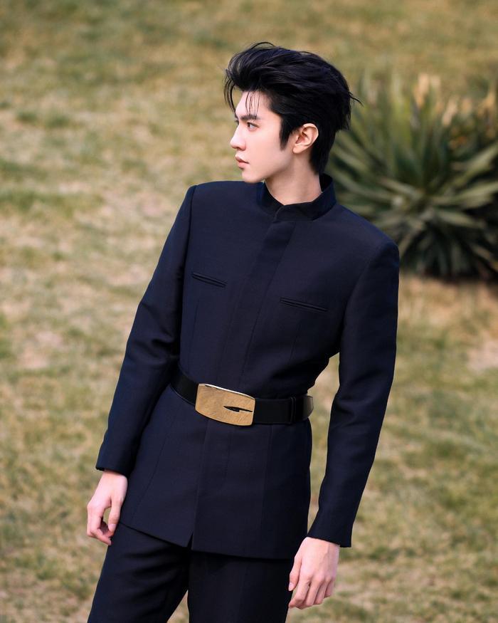 陈哲远工作室出图,一身黑色西装造型,释放别致的个性风貌……