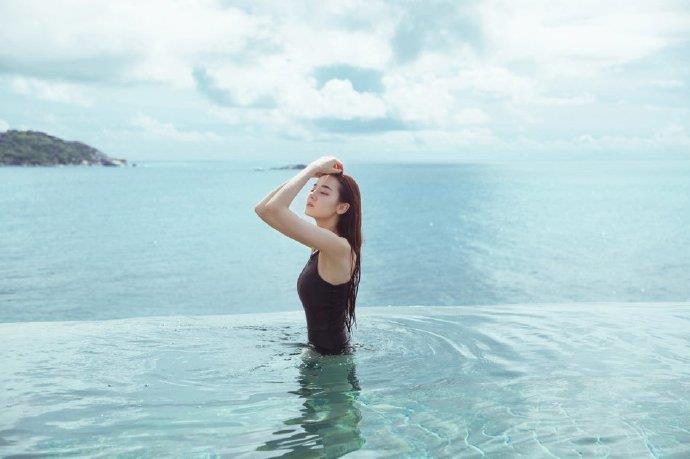 迪丽热巴比基尼大秀香肩 面朝大海回眸一笑清纯可人