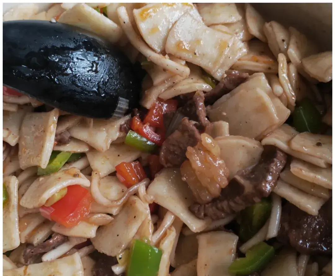 干拌,一种先经水煮,而后加入丰富的佐料炒制而成的拉面,辣椒和醋可根据自己的饮食习惯添加,配上一碗牛肉清汤,味道独特、极为爽口。