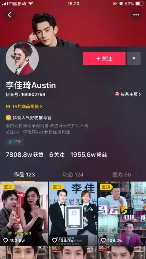 通过抖音口红试色,他曾一分钟卖掉14000支唇膏,5分钟卖出15000支口红,记录至今无人打破。