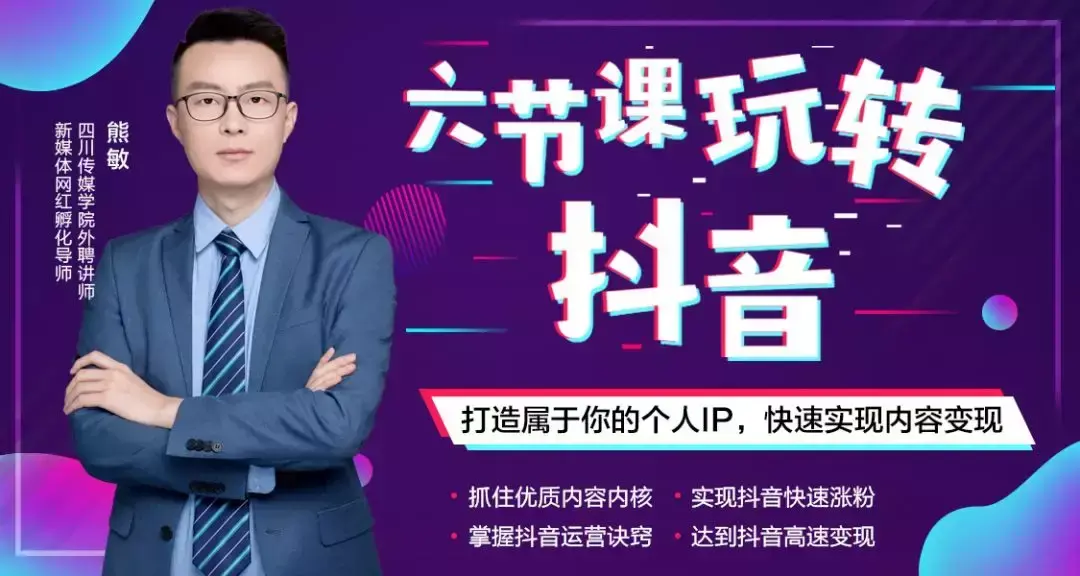 在全民互联网时代,为了让更多的人学习到新媒体的相关知识,熊老师决定从线下走上线上,倾尽全力打造一套新媒体课程,把他的实践融入到理论中,把只有他的学生才能听到的知识分享给网络上的各位网友。《六节课玩转抖音》就是他的第一堂课程,他会帮你抓住优质内容内核,实现抖音快速涨粉,掌握抖音运营诀窍,达到抖音高速变现!打造属于你的个人IP,听熊老师的《六节课玩转抖音》就够了!