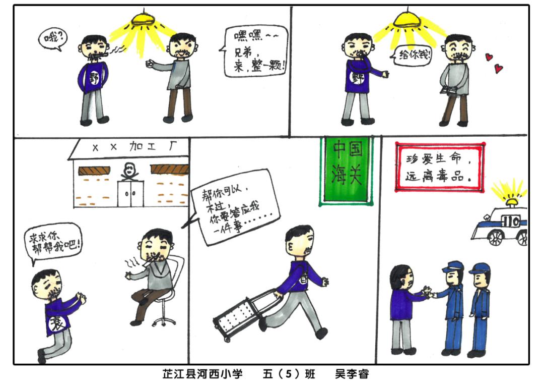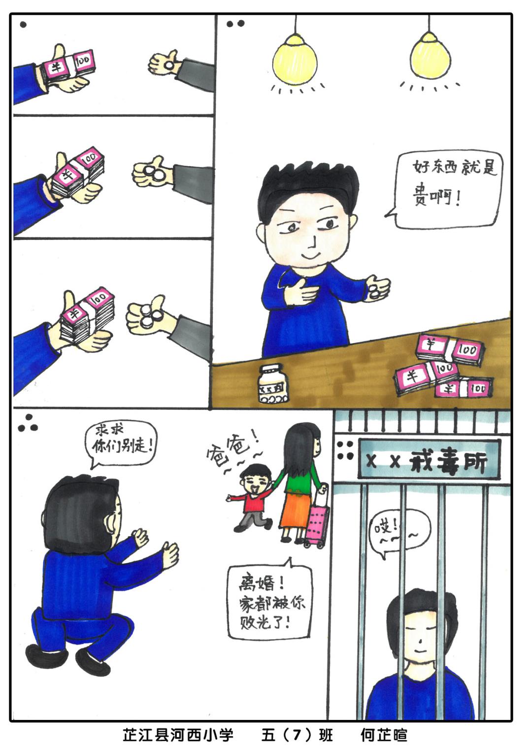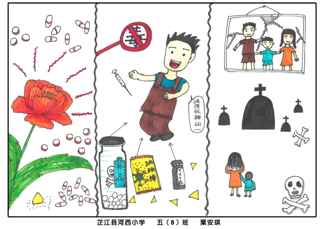 为筑牢青少年毒品预防教育工作基础,有效遏制青少年涉毒问题发展蔓延,近日,怀化市芷江侗族自治县河西小学以开学季“禁毒第一课”为契机,开展“无毒青春,健康成长”为主题的手绘禁毒漫画活动。