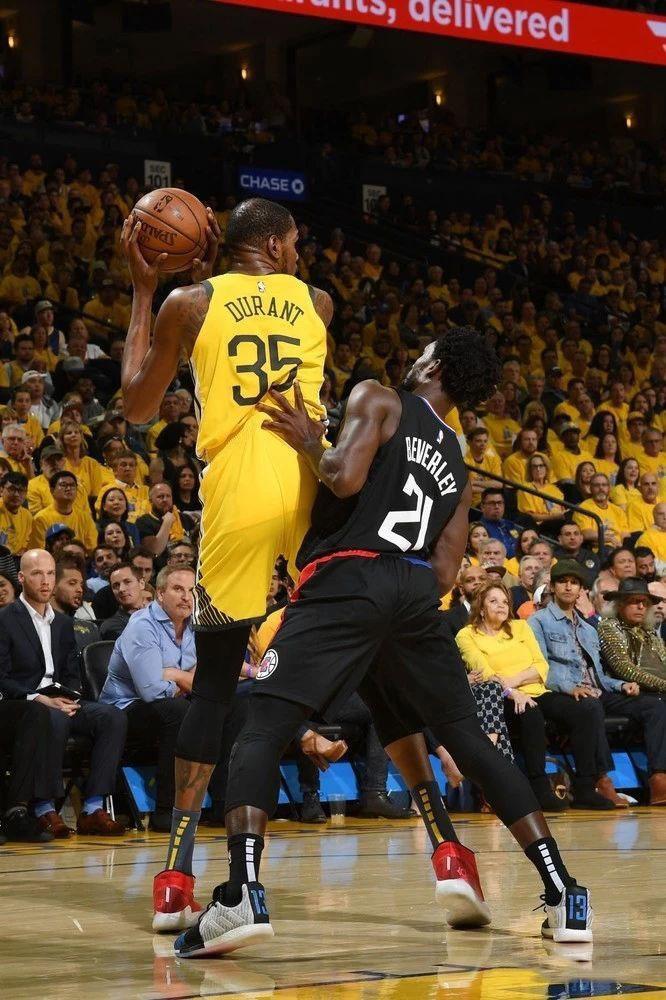 贝弗利甚至不会放过两人每一次对位的短暂喘息时间,垃圾话,夸张的肢体语言,来挑动,点燃杜兰特的敏感的内心。
