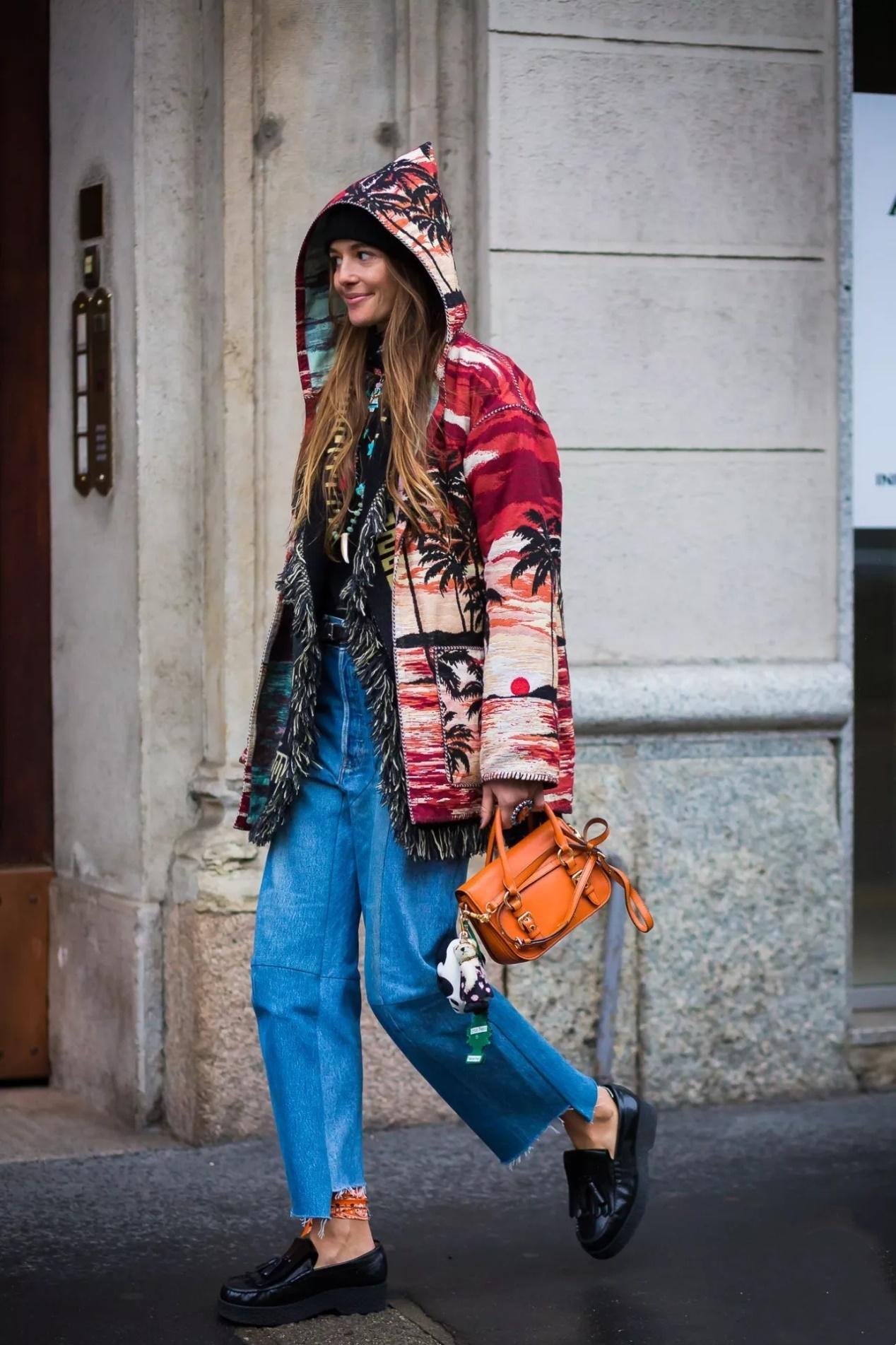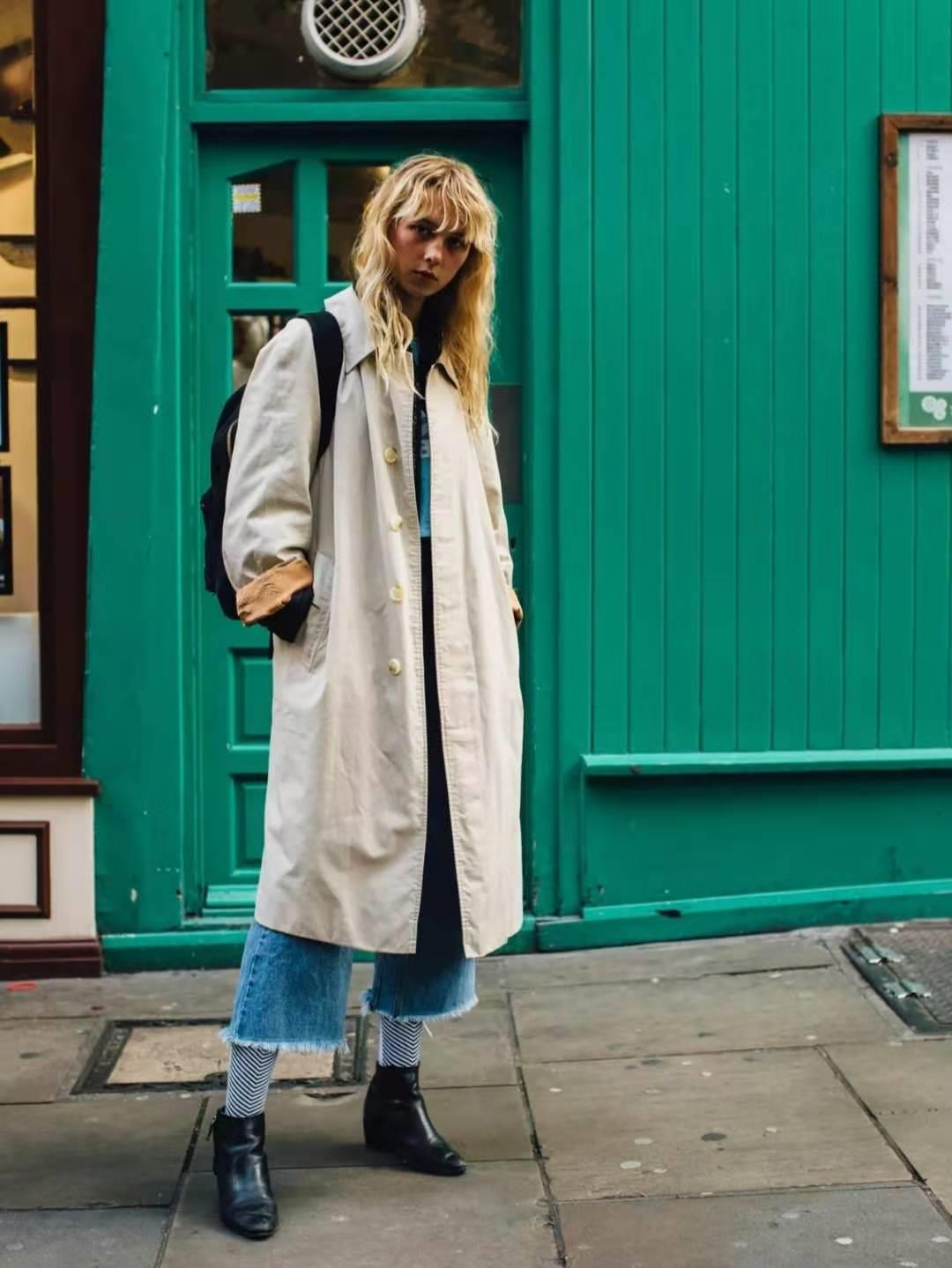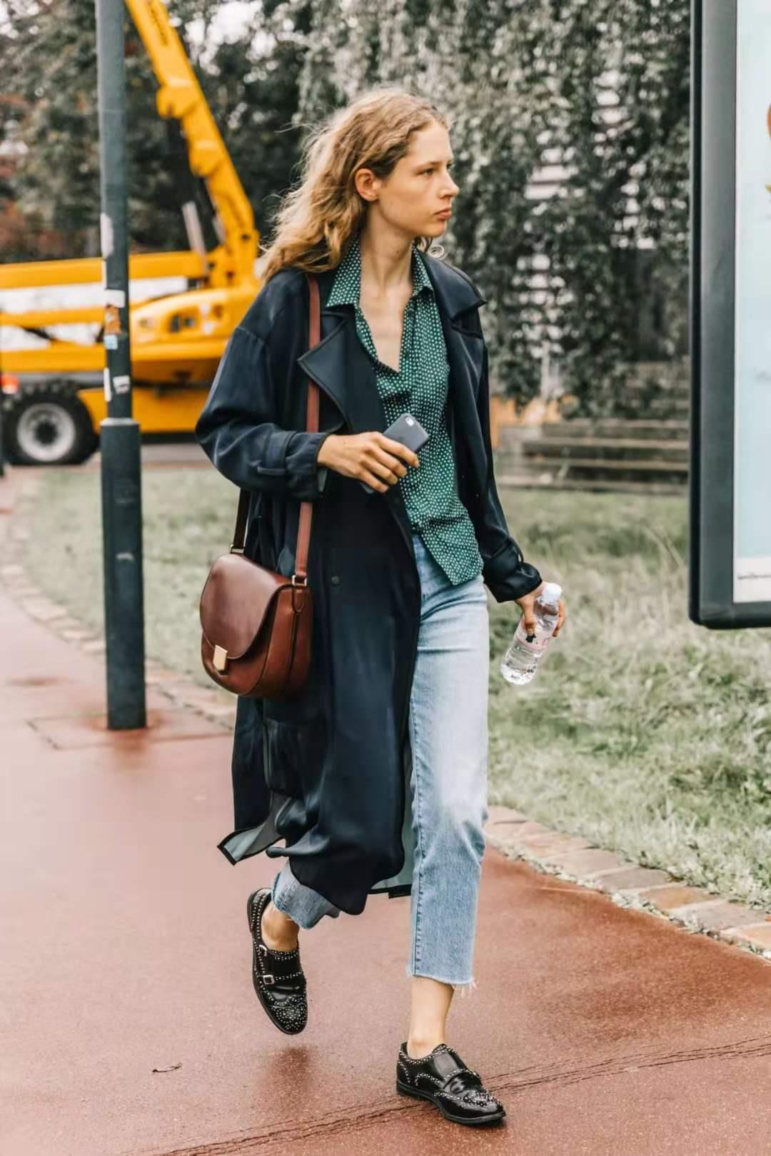 身材本来就不是特别苗条的女人穿大衣会担心显臃肿,但是搭配牛仔裤和乐福鞋就完全能够hold住了。选择一条九分的小脚高腰牛仔裤,搭配乐福鞋,可以起到很好的显腿长的效果,外穿大衣,时髦显腿长而又休闲的一身穿搭。
