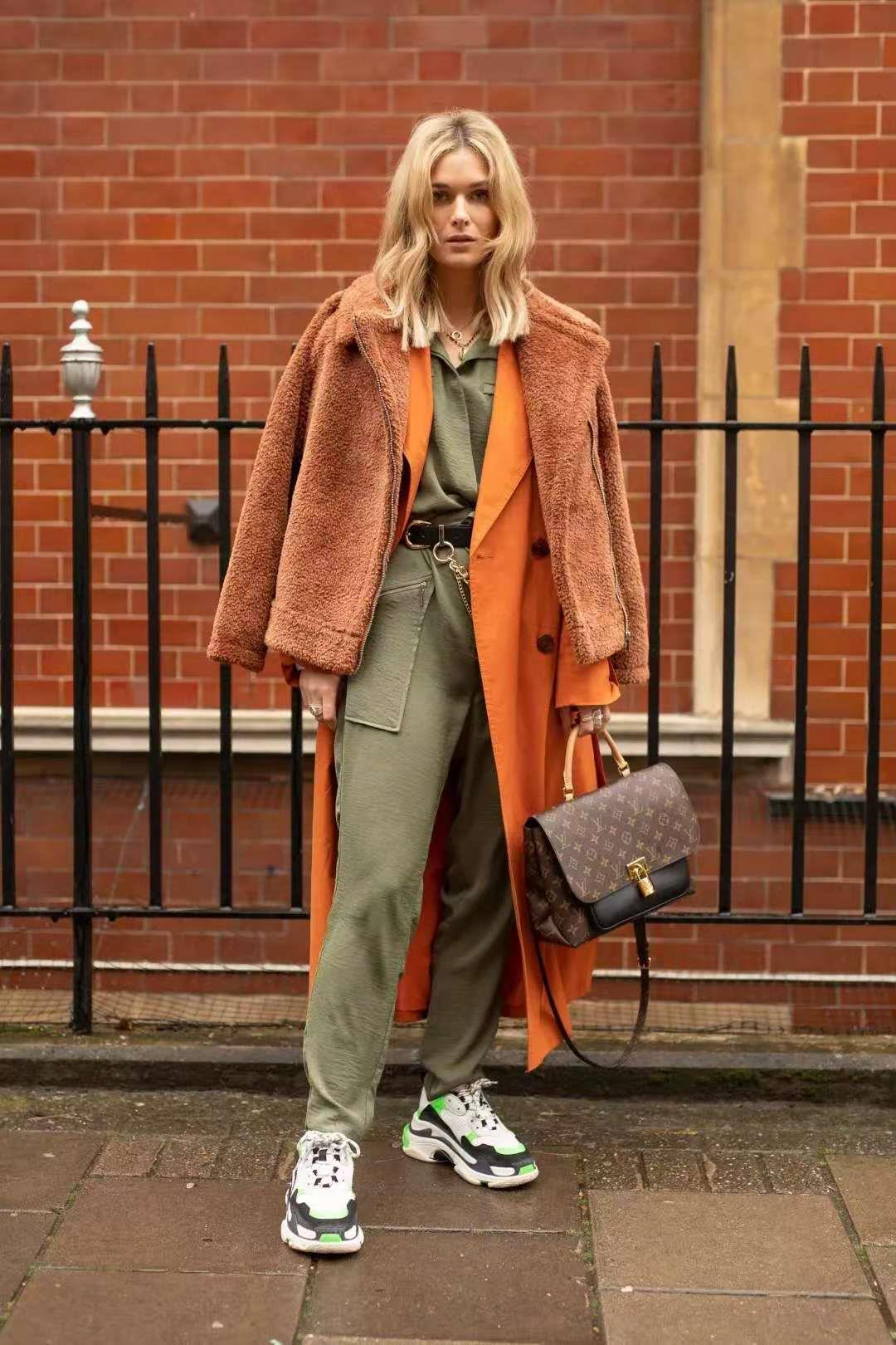 跑步鞋款式的运动鞋也是大衣的搭档之一,经典的设计永不过时,尤其是最近超级火的阿甘鞋,对脚宽星人穿是再合适不过了。还有看起来丑丑的运动老爹鞋,矮个子的女人用它来搭配大衣穿,分分钟长高几十厘米不止。