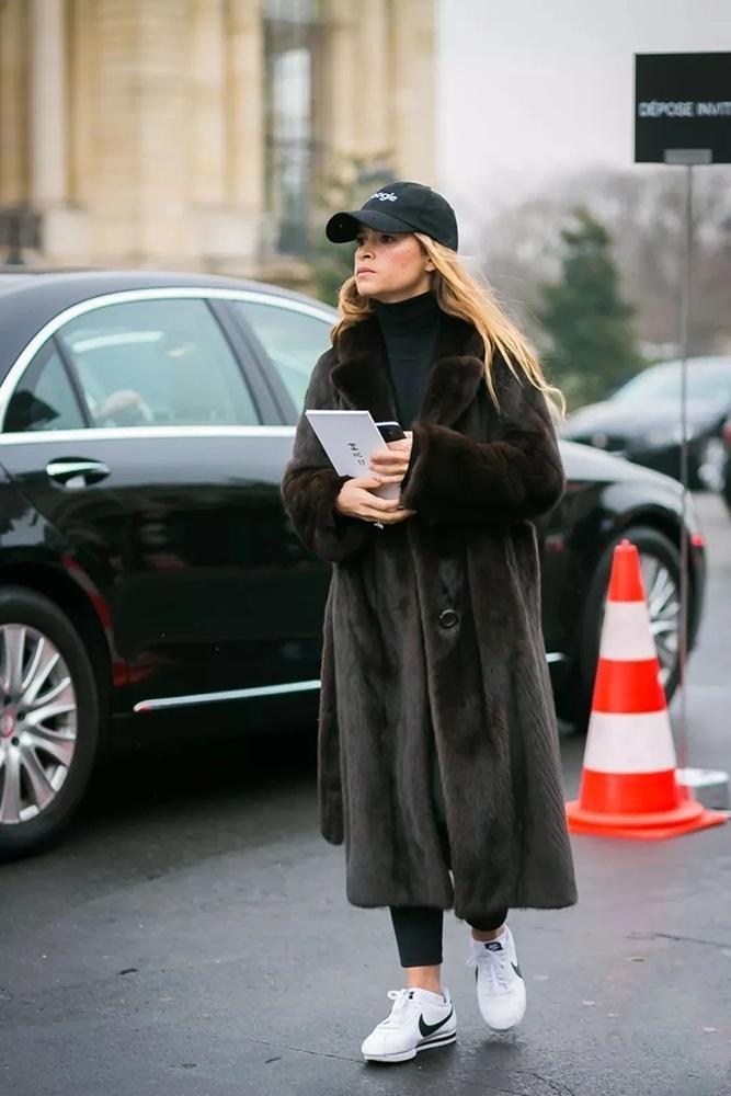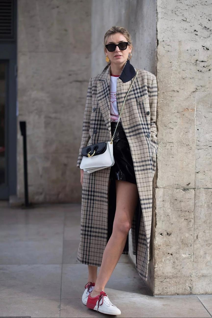 运动鞋和大衣的组合是既能够凸显出不一样的女人气质,同时又可以给人一种十分休闲的感觉。最好是搭配运动鞋中的帆布鞋,穿低帮可以露出纤细的脚踝,显得腿超细,而穿高帮又可以拉长下半身的比例,显得腿格外修长。