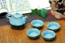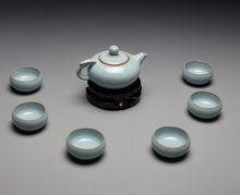 汝窑茶具,五大名窑之首,因产于汝州而得名,在中国陶瓷史上素有“汝窑为魁”之称,釉色类别有天青釉、月白釉等。汝瓷造型古朴大方,以名贵玛瑙为釉,色泽独特,有“玛瑙为釉古相传”的赞誉。