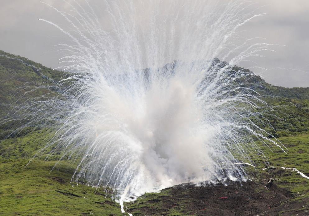 白磷弹是一种极具破坏力的化学武器,常被用于战争中。它是一种含有白磷的炸药弹,当被点燃后,白磷会燃烧并释放出强烈的热量和毒性烟雾。白磷弹通常被用来攻击人员、建筑物和装备,破坏力非常强,往往会造成大量的人员伤亡和财产损失。
