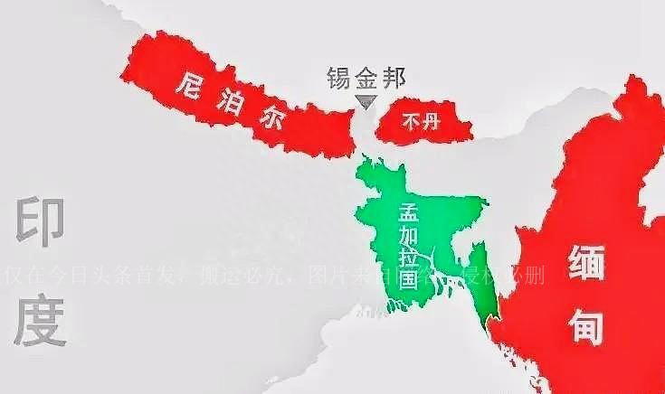一旦不丹摆脱印度的控制,这将是对印度威望的打击,可能在印度东北六邦产生连锁反应。阿萨姆邦的分裂分子可能会重新活跃,曼尼普尔邦的抗议势力可能会重新燃起。尼泊尔可能会与孟加拉合作,切断印度的通道。对于印度这样一个被英国殖民者强行捏在一起的国家来说,分裂并不是不可能的。