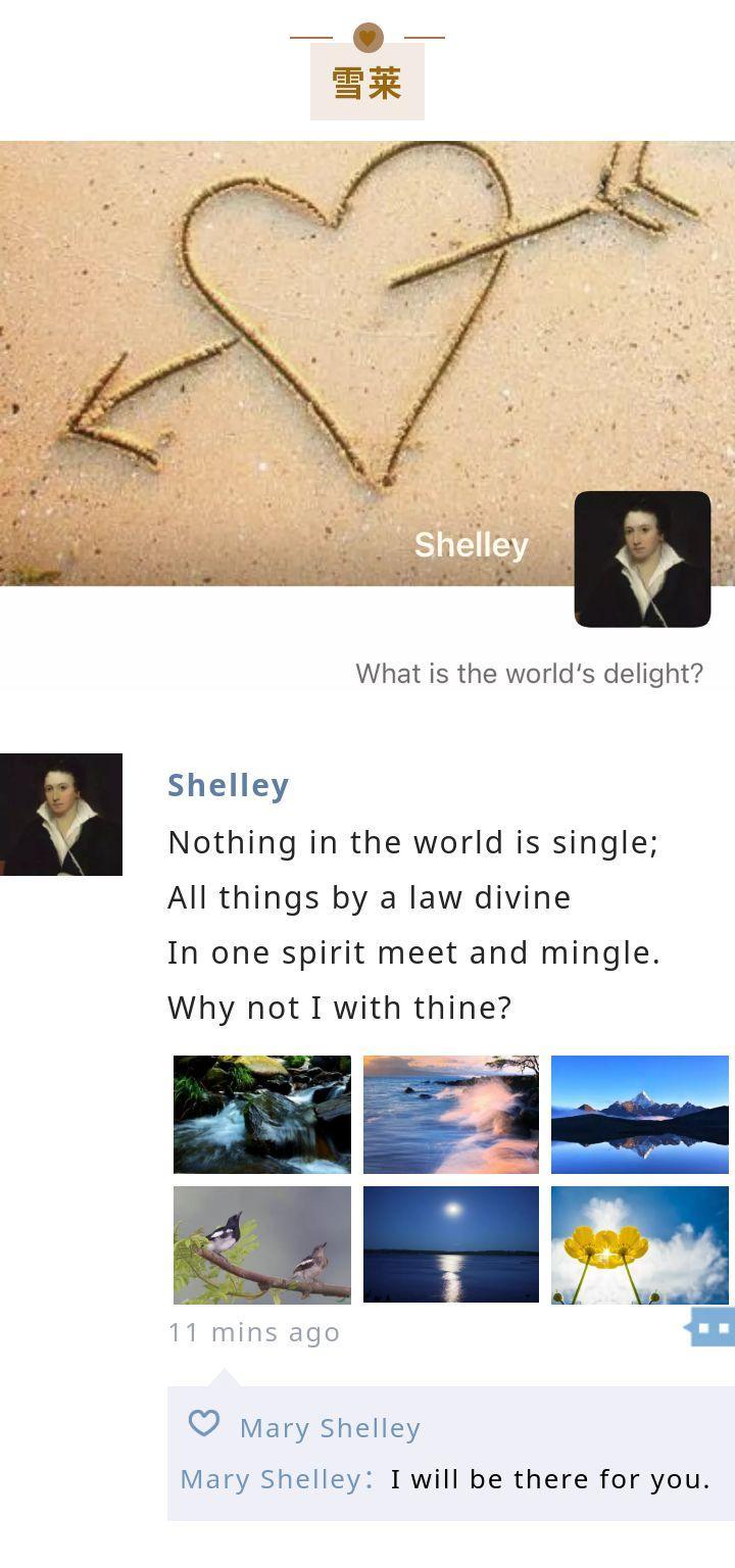 雪莱把大自然和爱的表达联系在了一起,传达了最原始、最质朴的对爱的理解。
