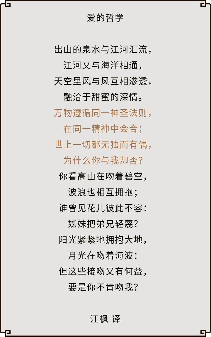 雪莱的这首诗在抒发自己对爱的理解,但是全诗却没有看到一个“爱”字。
