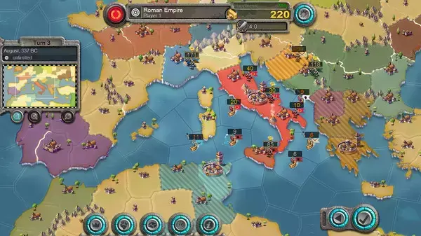 低配版文明6~免费战棋沙盒推演游戏《征服时代4 Age of Conquest IV》。游戏背景设定在中世纪以前,玩家可以使用包括罗马、印加、法国、俄罗斯、中国等国家参与地图的涂色大战中。