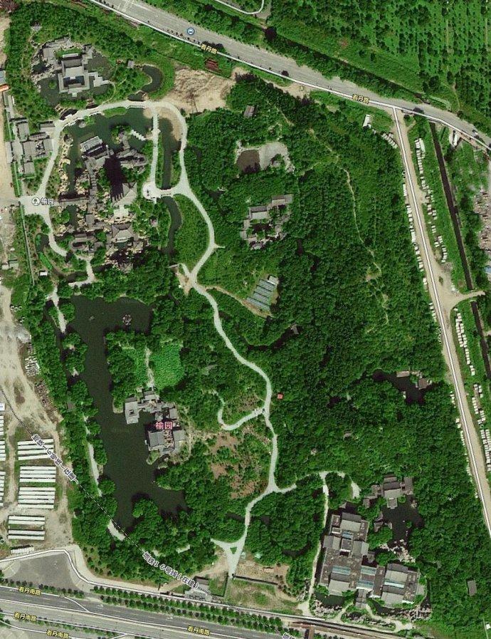 主景为榆园三十二景,分别是:烟雨观霖、梅园晴雪、镜湖秋艳、樱园春浓、武陵探幽、山林寻趣、荷池夜雨、西堤晓雾、文峰夕照、翠湖行云、曲水流觞、瑶池昕松、樱岭日出、半园鱼跃、杨关涌翠、梨湾凝玉、竹乡泛舟、别有洞天、西门迎宾、狮林宴客、药师梵韵、栈道闻莺、芙蓉映日、飞瀑冷月、隅园清音、圣祠钟声、磻溪垂钓、鸳榭观瀑、圆门入画、双亭比翼、残像静思、廊桥消夏。
