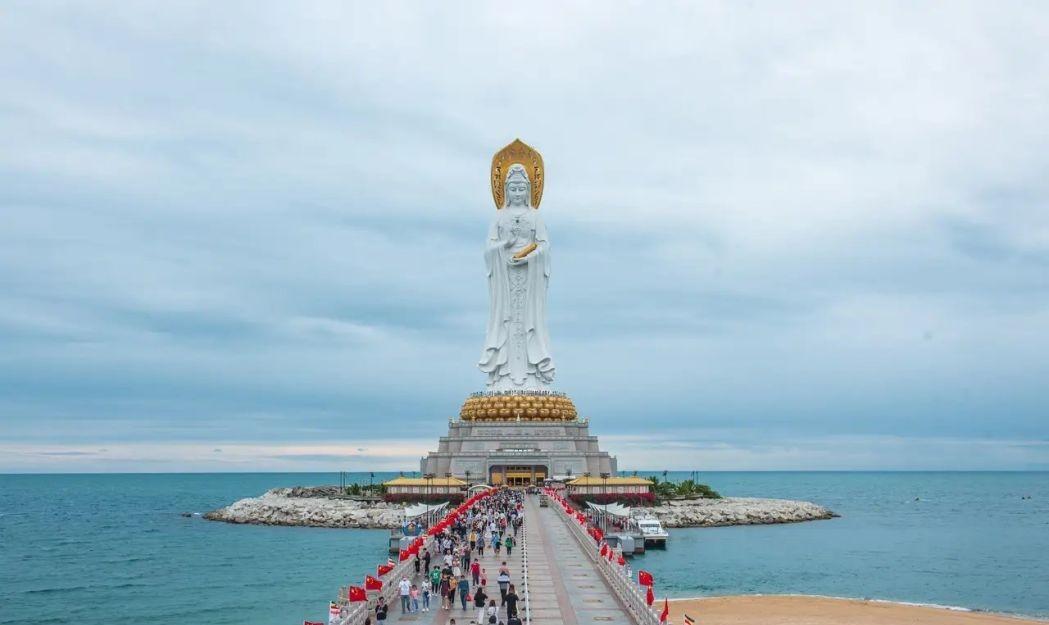 其中高108米的海上观音塑像最具代表性,庄严肃穆,高大宏伟,乘坐飞机到凤凰国际机场即将降落的时候,就会看到这座海上观音塑像,而站在塑像脚下望着远方,仿佛心灵得到了一种极致的安宁。