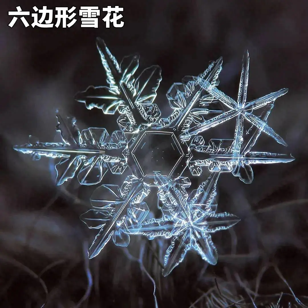 雪其实形状是非常多的,不是我们都看到的那种六个雪花瓣,最初的时候,因为全世界各地的人对于不同降水的叫法都不同。所以各国就开了一个国际会议,把各种降水给他分了类。当时一共分了十种,其中有七种都属于雪,比如说.雪片、星形、雪花柱状等等。当然,这只是一个大的分类,是雪花最基本的整体轮廓。如果从更具体的形状上来看的话,根据一些统计,雪花至少有三十多种不同的形状。最常见的就是我们在那个冰雪奇缘中看到的六边形的雪花。那每一种雪花如果放在显微镜下仔细看,你都会觉得这真自然界给我们人类的艺术品。