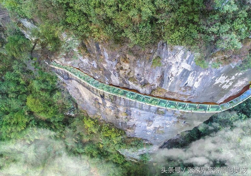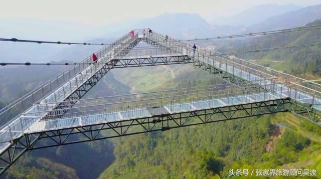 悬廊成“A”字形,位于300米高的悬崖峭壁上,被称为“世界最长的悬挑空中玻璃走廊”。且申请了吉利斯世界纪录,每次只允许30个人同时在桥上,脚底 是透明玻璃,栏杆也是一眼能看到崖底风景的那种,迎着山风,胆小的人还是会有些恐惧!