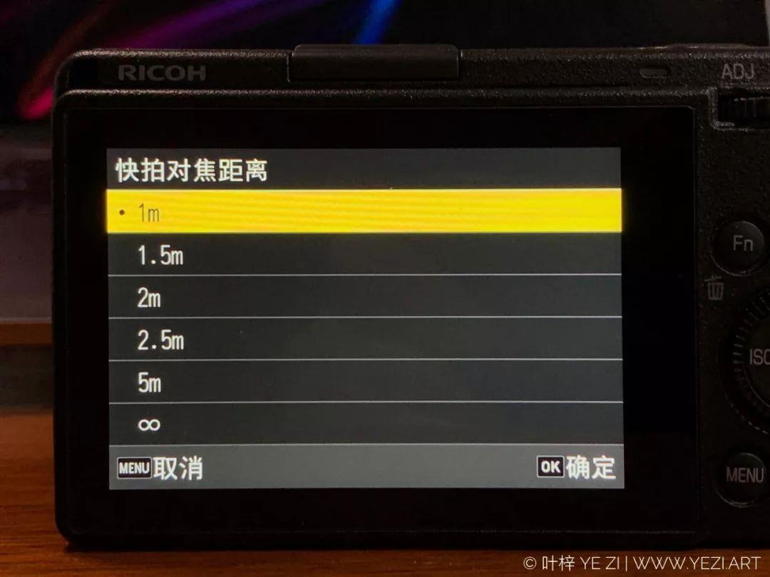 理光GR III “快慢模式”中关于预对焦距离的选项 © 叶梓