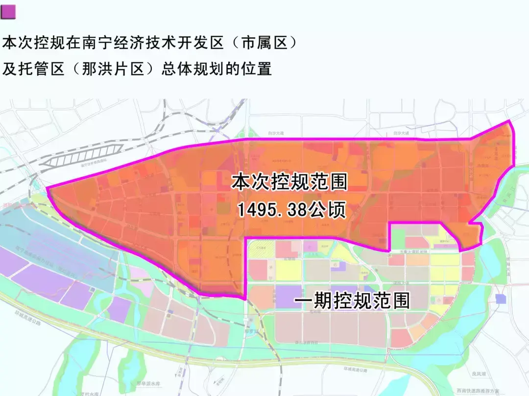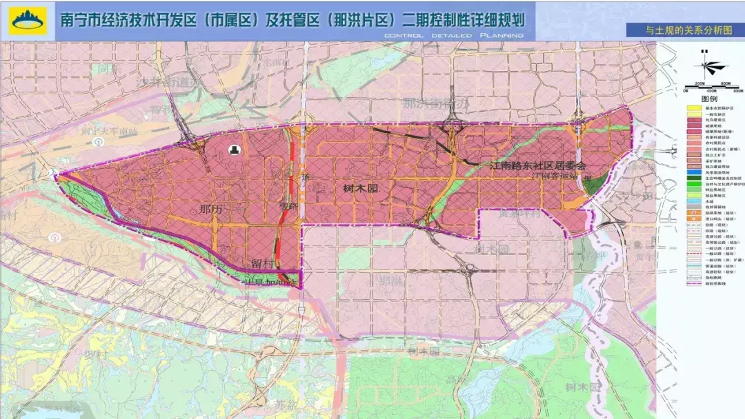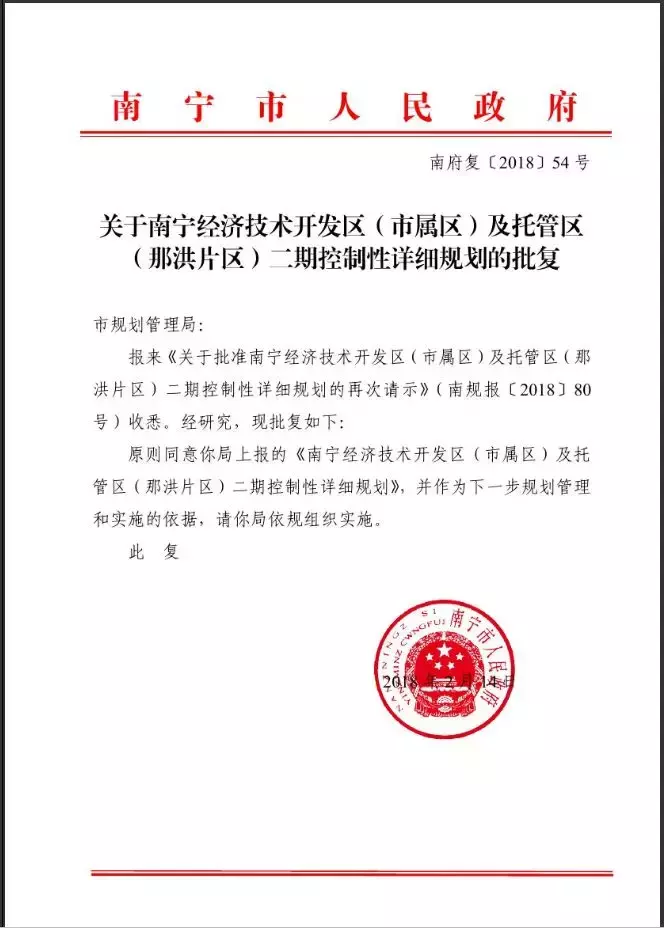 到了2015年11月13日,南宁市规划管理局出于对江南经济技术开发区的发展现状,以及对南宁市新时代发展的考虑,申报了《南宁经济技术开发区(市属区)及托管区(那洪片区)二期控制性详细规划》,经过审核,终于在2018年2月14日获得批复。
